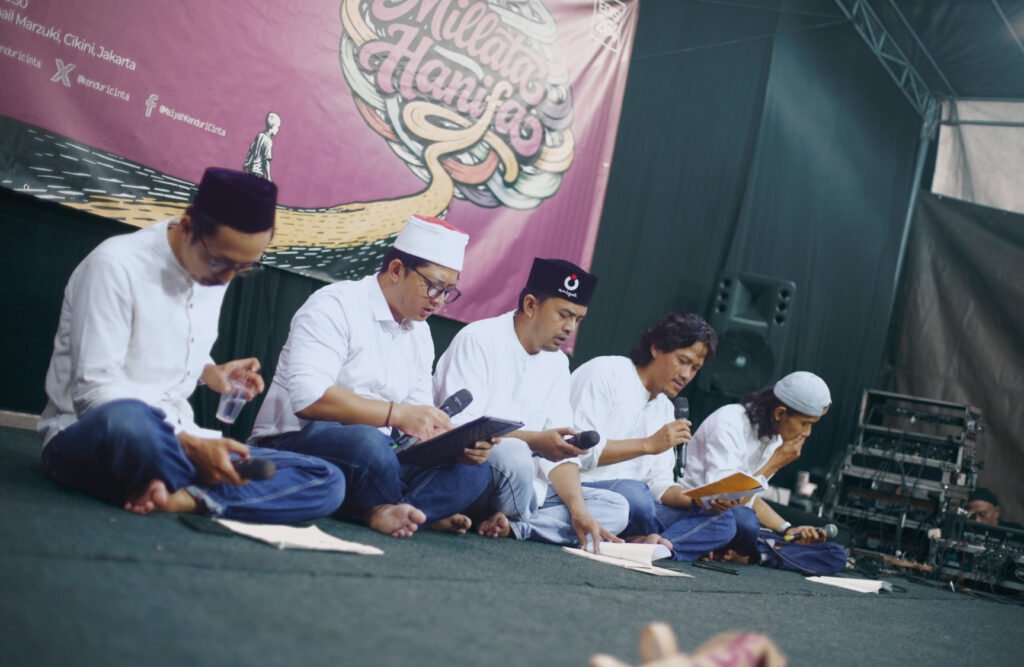 Sesi mukadimah dimulai dengan sapaan hangat dari Mizani dan Ibnu kepada para jamaah, sebelum mengundang narasumber Pram, Juddin, Amien, dan Tri untuk naik ke panggung. Forum malam itu menjadi bagian dari Kenduri Cinta edisi 264: Millata Hanifa, tema yang telah digali secara mendalam selama empat minggu melalui forum rutin Reboan.
