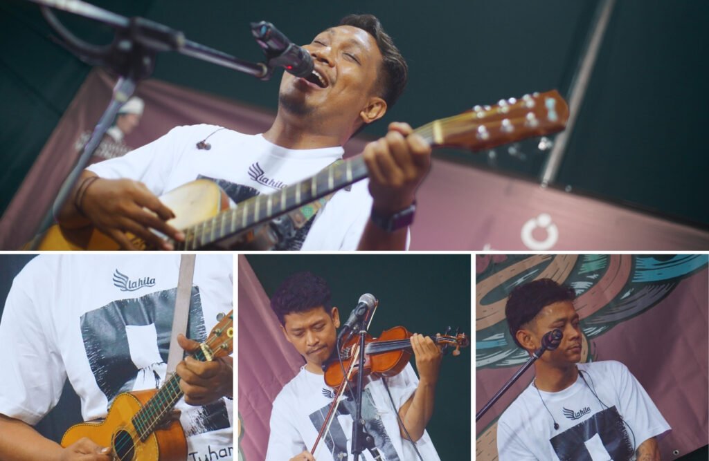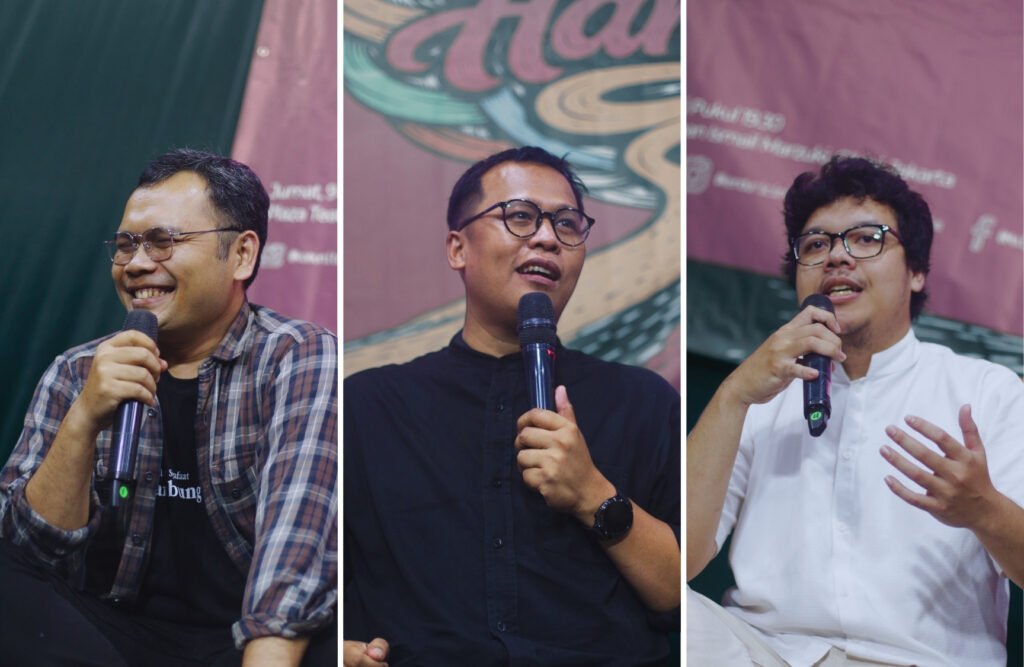 Setelah sesi mukadimah, forum memasuki jeda. Lahila mengisi ruang dengan alunan musik, menyanyikan lagu-lagu seperti Kepada Noor, Atur Saja Tuhan, dan Sedia Aku Sebelum Hujan. Nada-nada lembut itu memberi waktu bagi jamaah untuk merenungkan pembahasan sebelumnya, sambil menenangkan hati sebelum diskusi berikutnya dimulai. Fahmi dan Karim naik ke panggung, menyapa jamaah, dan mengajak mereka merapat.