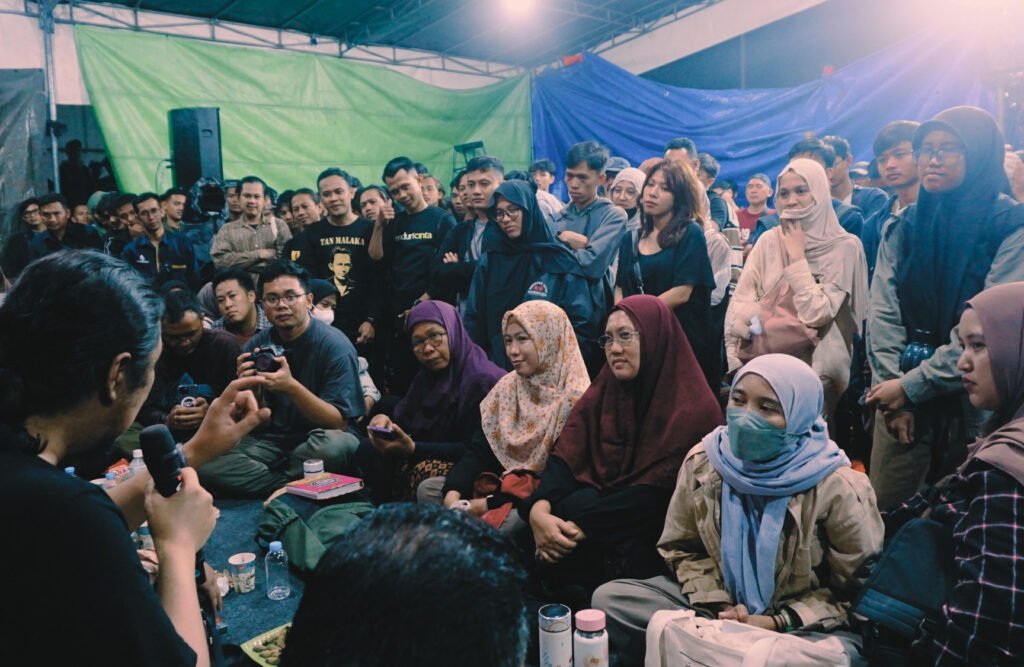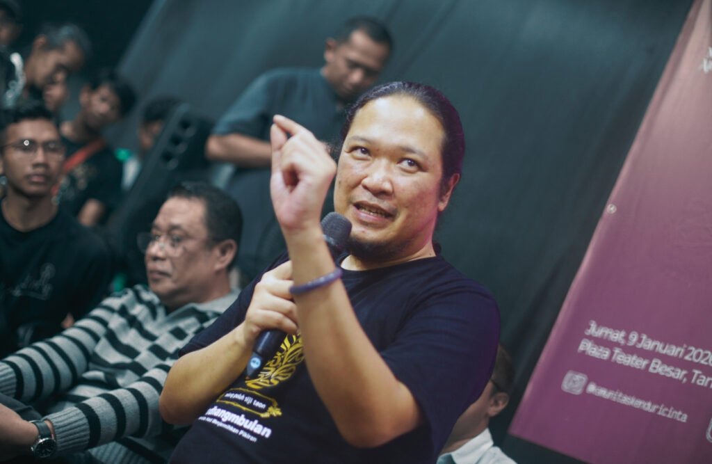 Suasana kemudian dilanjutkan dengan pembacaan puisi Masih Perlukah Air Mata karya Emha Ainun Nadjib. Jay—penggiat Kenduri Cinta sekaligus seniman Taman Ismail Marzuki—membacakan puisi tersebut, menghadirkan kata-kata yang menggugah sebagai pengantar refleksi sebelum forum bergerak ke sesi-sesi berikutnya.